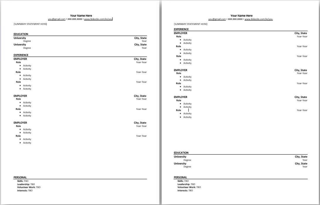 A strong resume isn’t one-size-fits-all. That’s why we’re providing a set of clean, professional resume templates designed for both students just starting out and professionals ready to level up. These templates are easy to customize and built to showcase your experience, skills, and story — clearly and confidently.